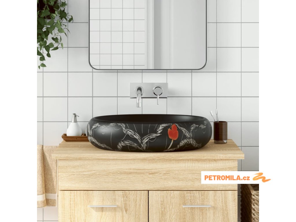 Umyvadlo na desku černé oválné 59 x 40 x 15 cm keramika