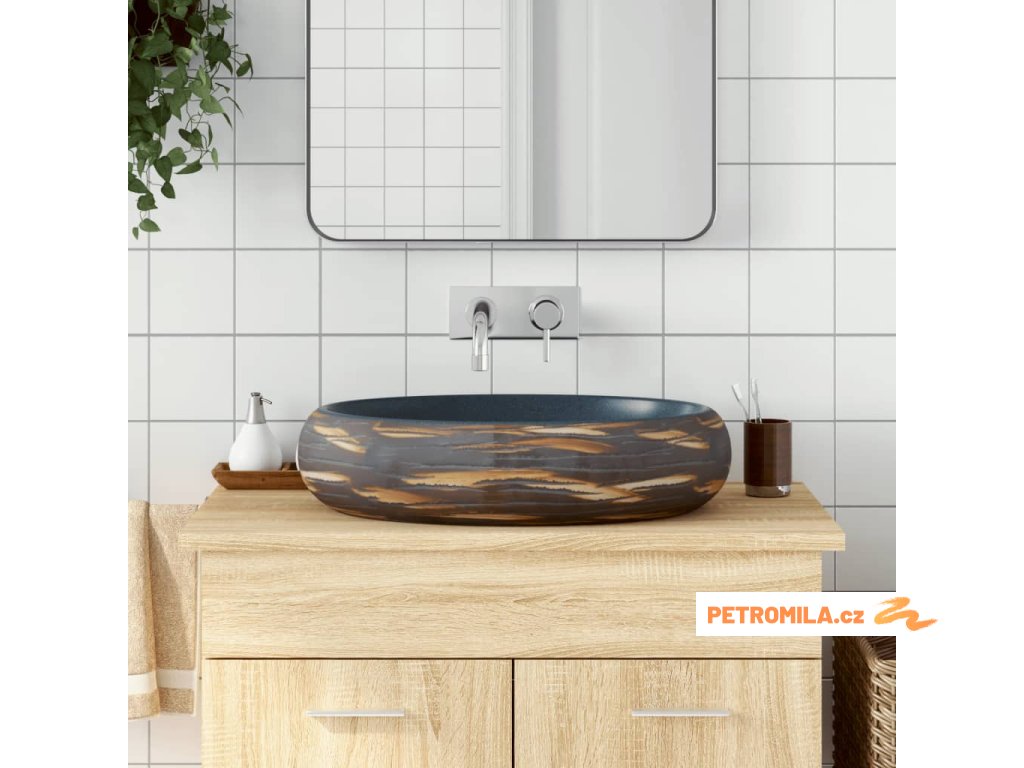 Umyvadlo na desku hnědé a modré oválné 59 x 40 x 15 cm keramika