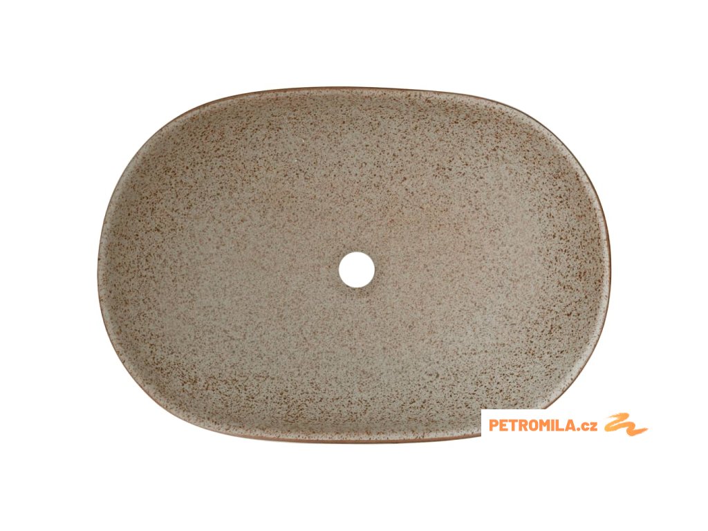 Umyvadlo na desku pískové a hnědé oválné 59x40x14 cm keramika