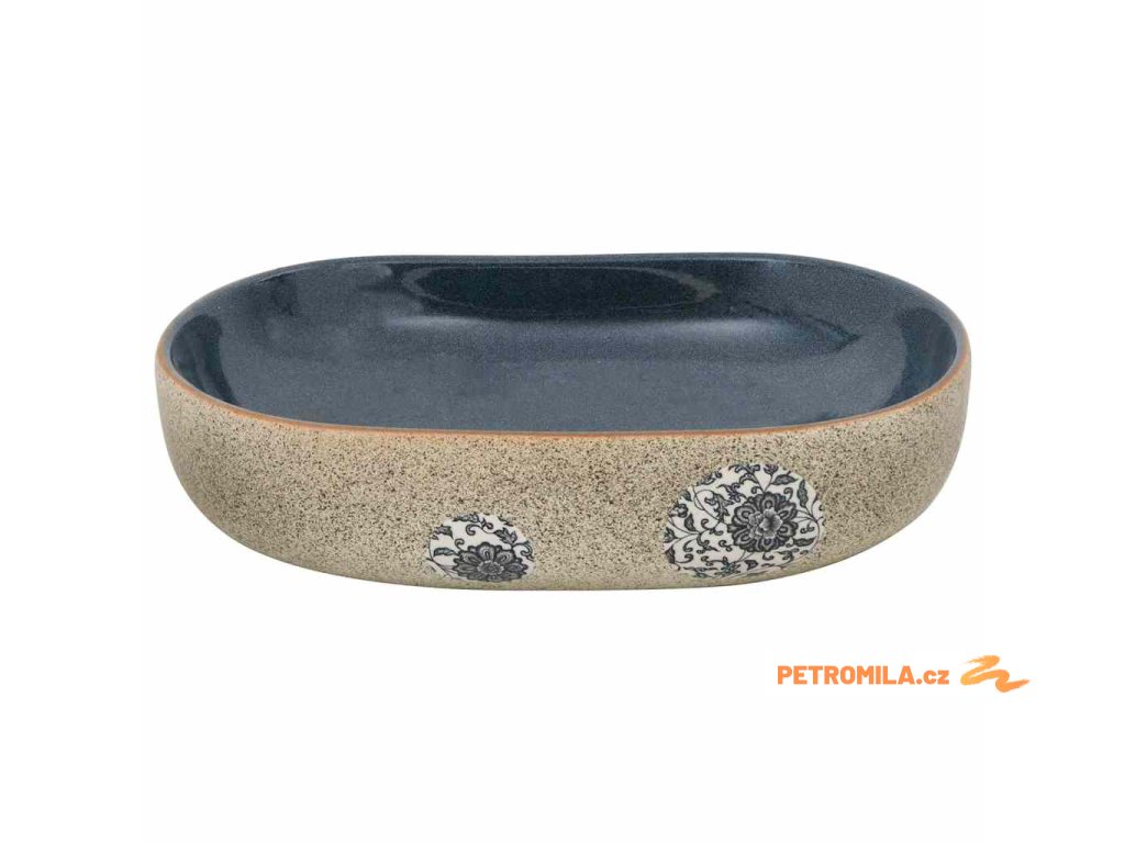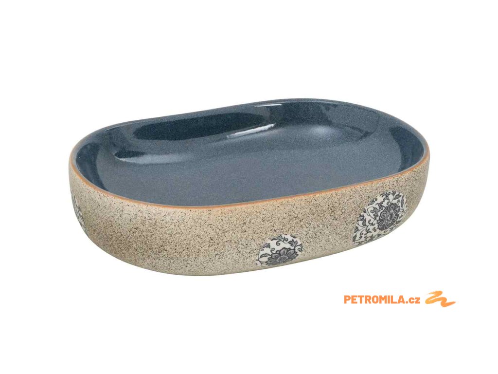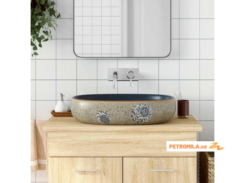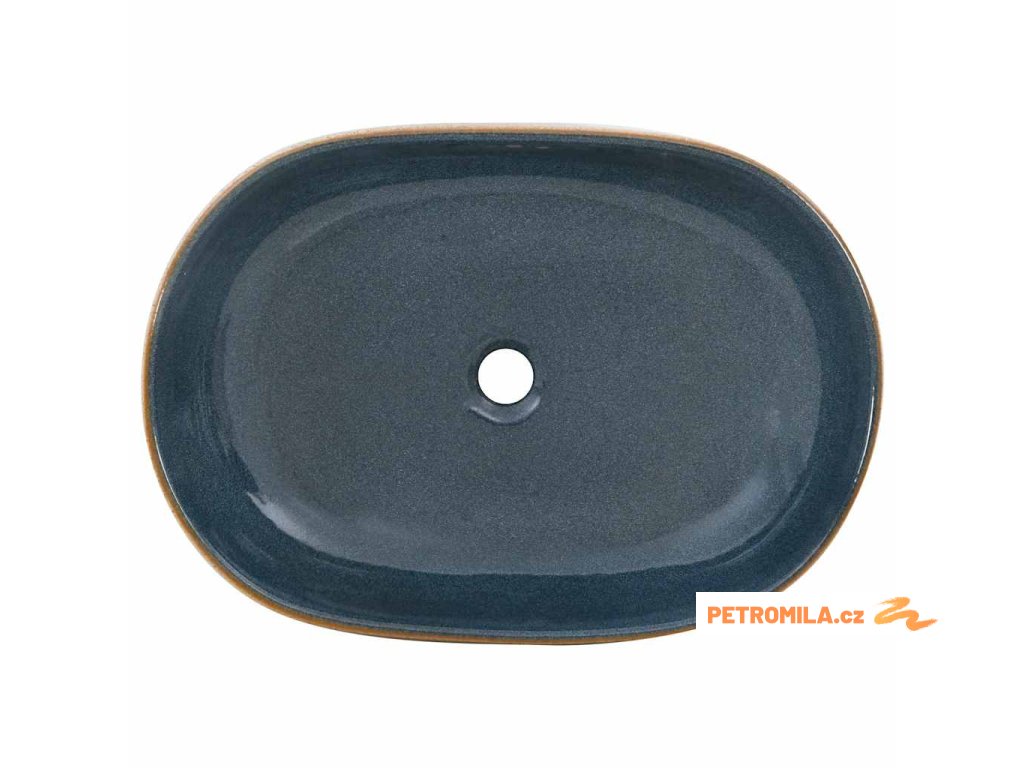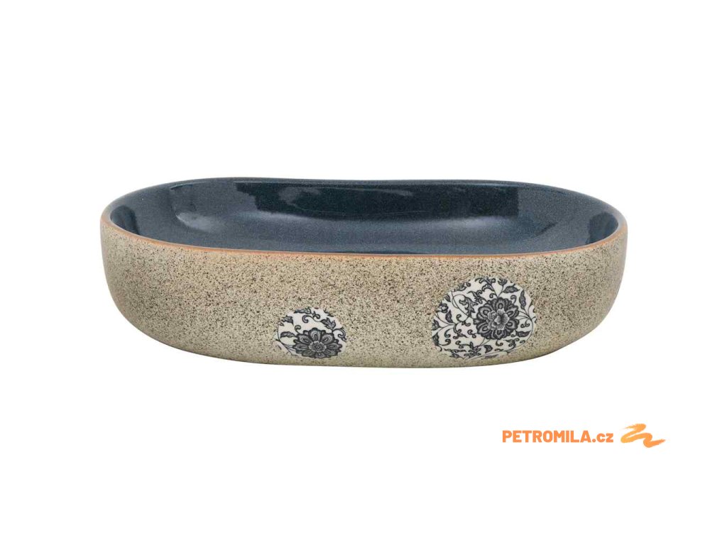 Umyvadlo na desku pískové a modré oválné 59x40x14 cm keramika