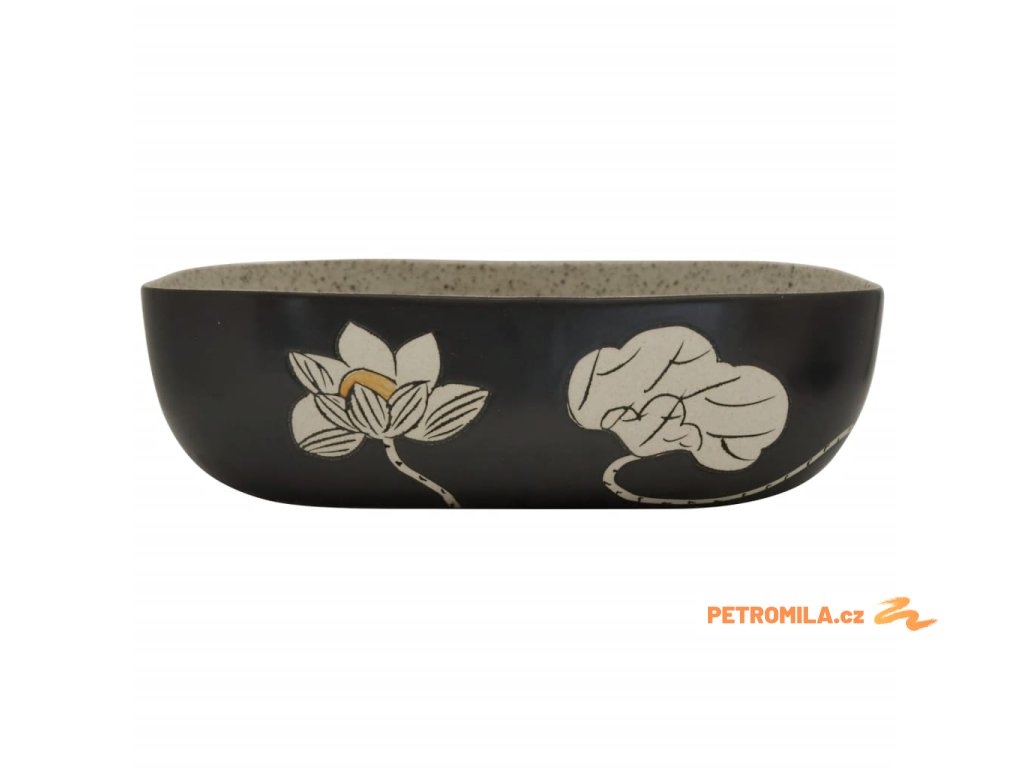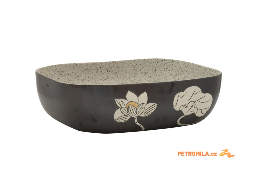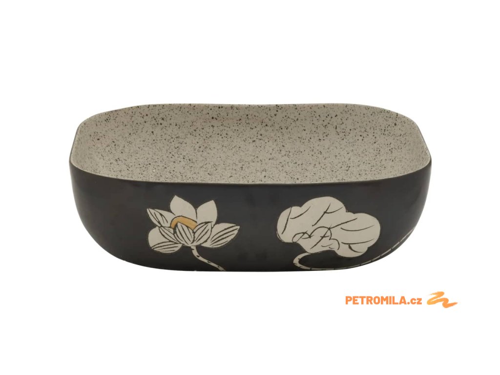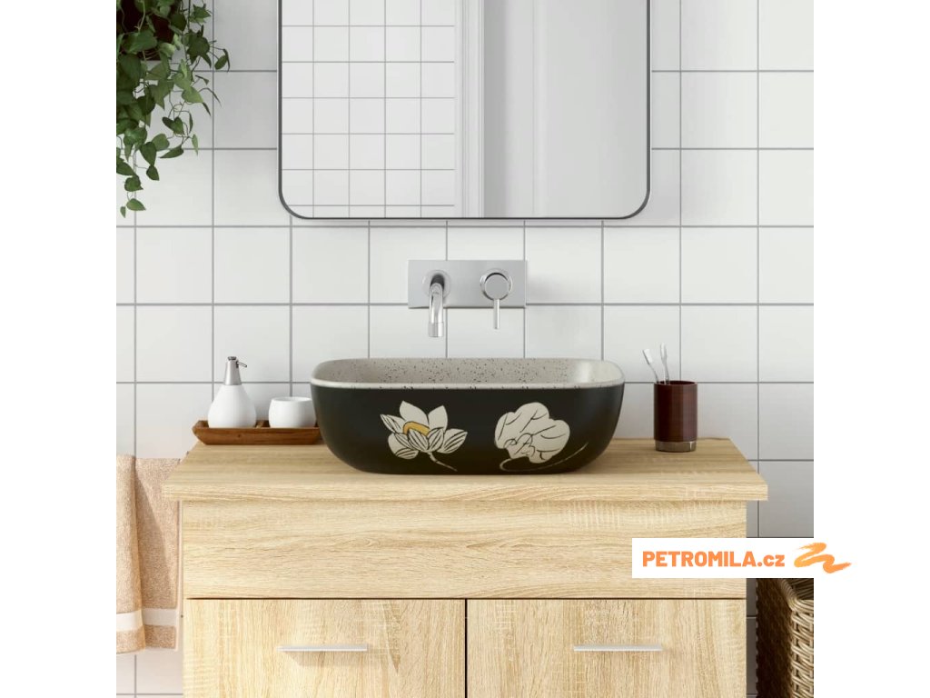 Umyvadlo na desku šedé a černé obdélník 48x37,5x13,5cm keramika
