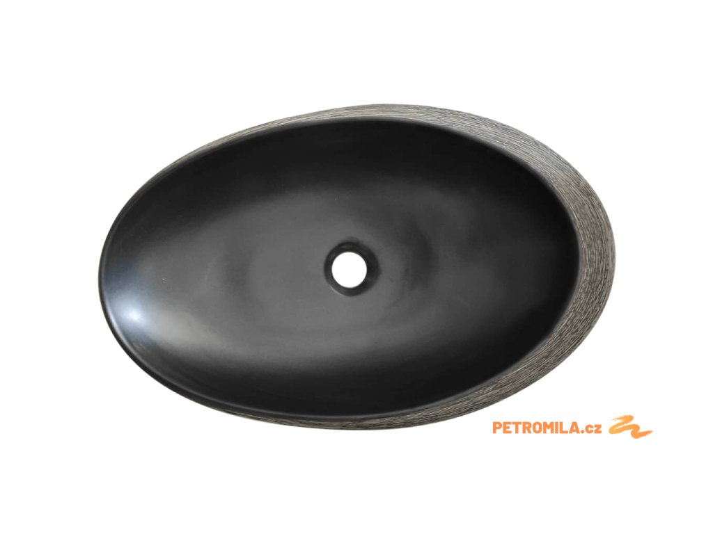 Umyvadlo na desku šedé a černé oválné 59 x 40 x 14 cm keramika