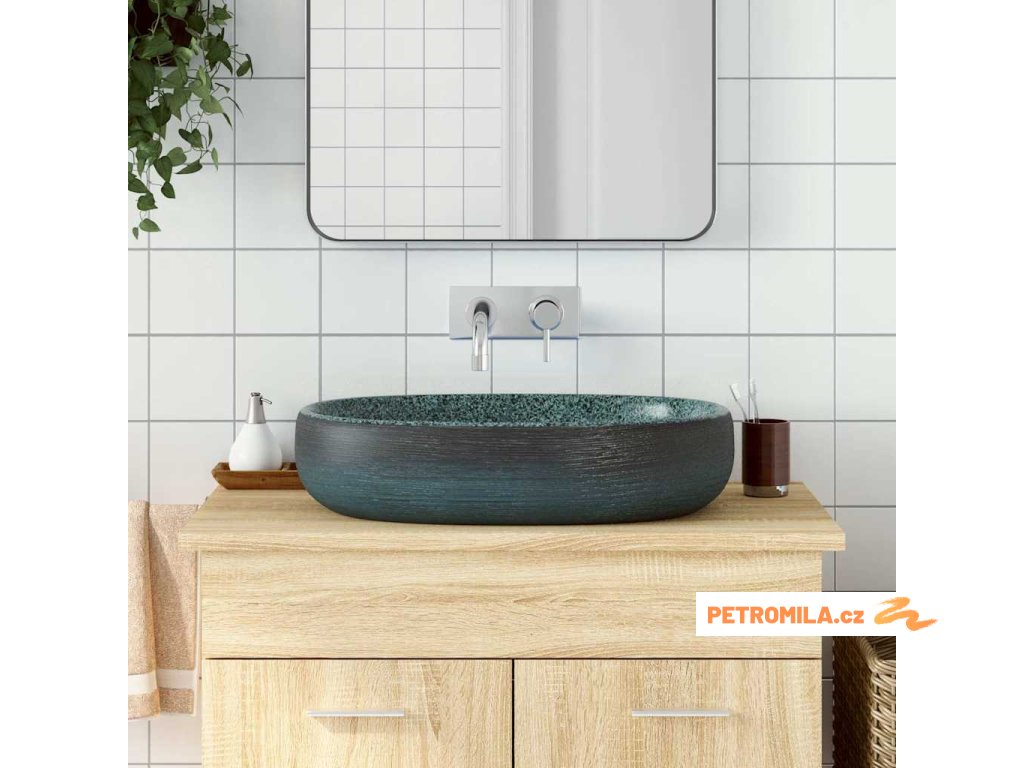 Umyvadlo na desku černé a modré ovál 56,5x36,5x13,5 cm keramika