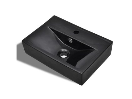 Keramické umyvadlo s otvorem na baterii a přepadem černé obdélníkové