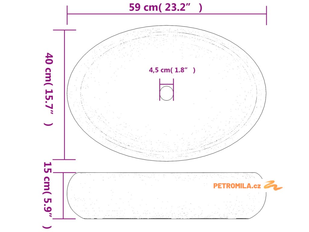 Umyvadlo na desku vícebarevné oválné 59 x 40 x 15 cm keramika