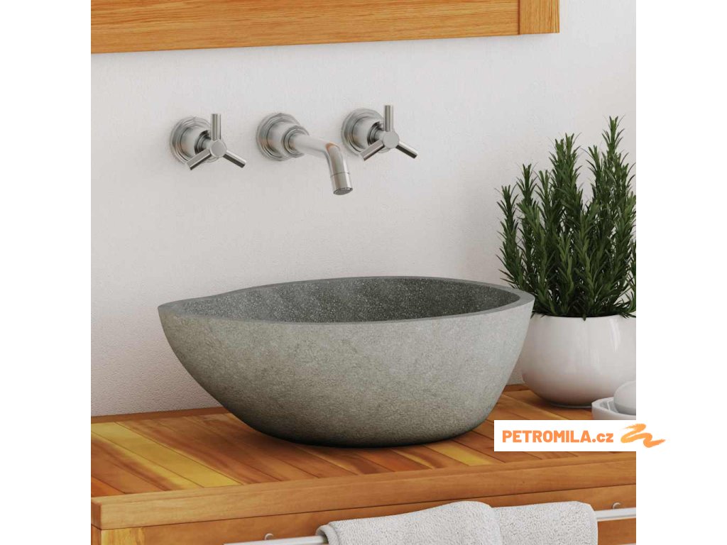 Toto oválné umyvadlo, vyrobené z přírodního říčního kamene bude stylovým doplňkem do každé koupelny nebo na toaletu.