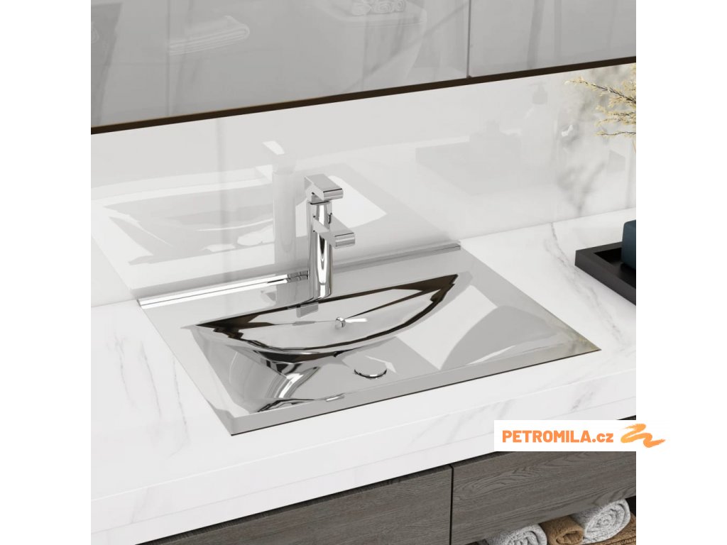Umyvadlo s přepadem 60 x 46 x 16 cm keramika stříbrné