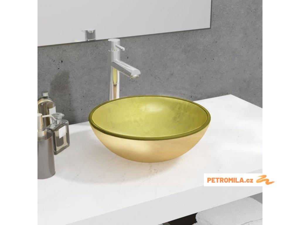 Umyvadlo tvrzené sklo 35 x 12 cm zlaté