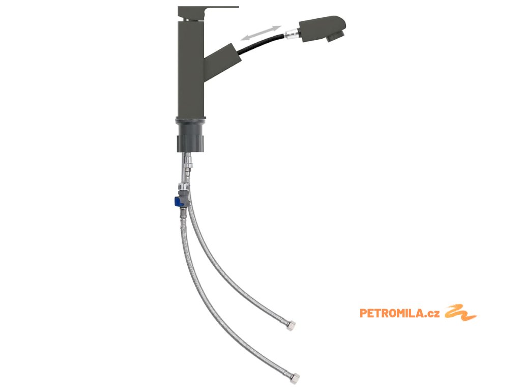 Tento kohoutek do koupelny má masivní mosaznou konstrukci a kovové rukojeti, takže je odolný a robustní. Kohoutek má také praktickou flexibilní nerezovou připojovací hadici, takže je vhodný pro většinu umyvadel a snadno ho připojíte ke všem běžným systémům tlakových ohřívačů se studenou a teplou vodou. Vodovodní baterie má také vytahovací spršku z ABS a praktické otočné ramínko s 360stupňovým rozsahem otáčení.