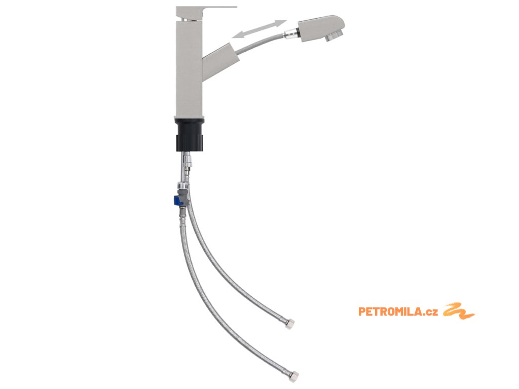 Tento kohoutek do koupelny má masivní mosaznou konstrukci a kovové rukojeti, takže je odolný a robustní. Kohoutek má také praktickou flexibilní nerezovou připojovací hadici, takže je vhodný pro většinu umyvadel a snadno ho připojíte ke všem běžným systémům tlakových ohřívačů se studenou a teplou vodou. Vodovodní baterie má také vytahovací spršku z ABS a praktické otočné ramínko s 360stupňovým rozsahem otáčení.