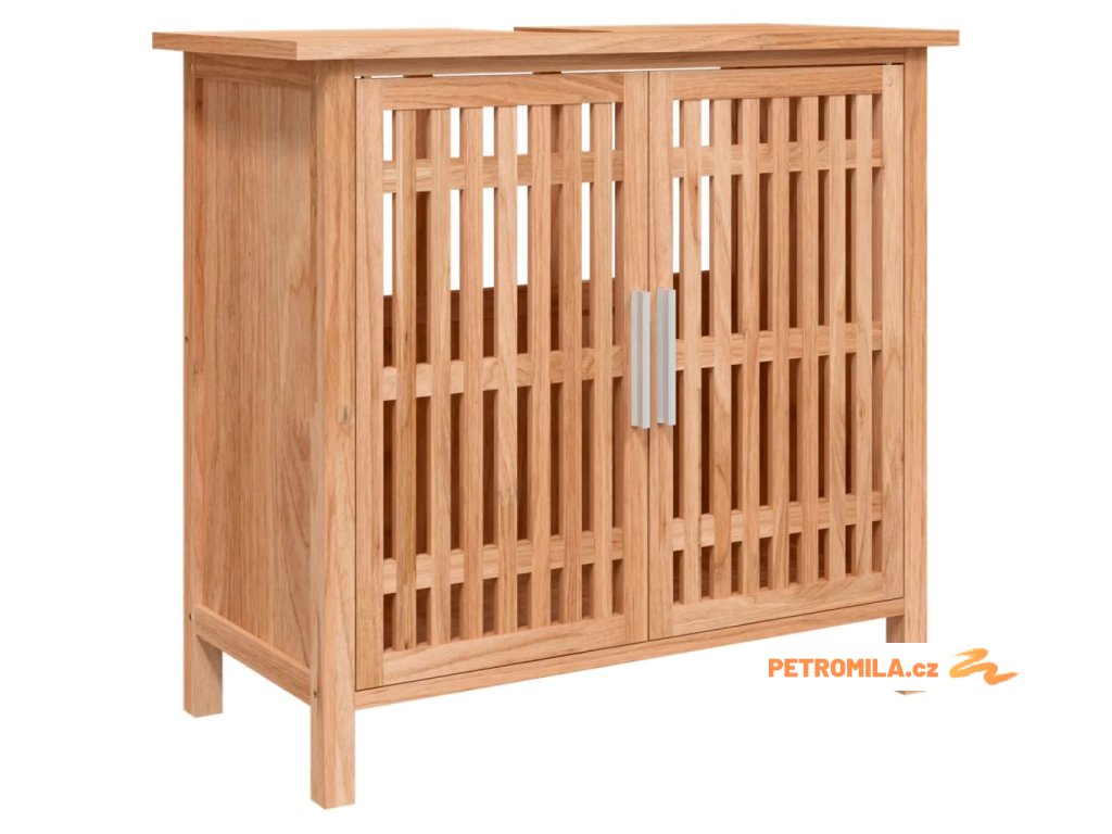 Tato dřevěná umyvadlová skříňka s velkým úložným prostorem je elegantním a nadčasovým doplňkem každé koupelny nebo toalety.