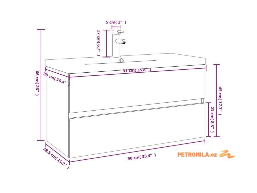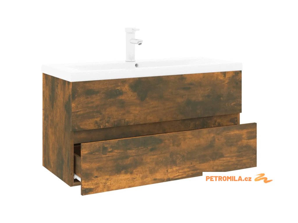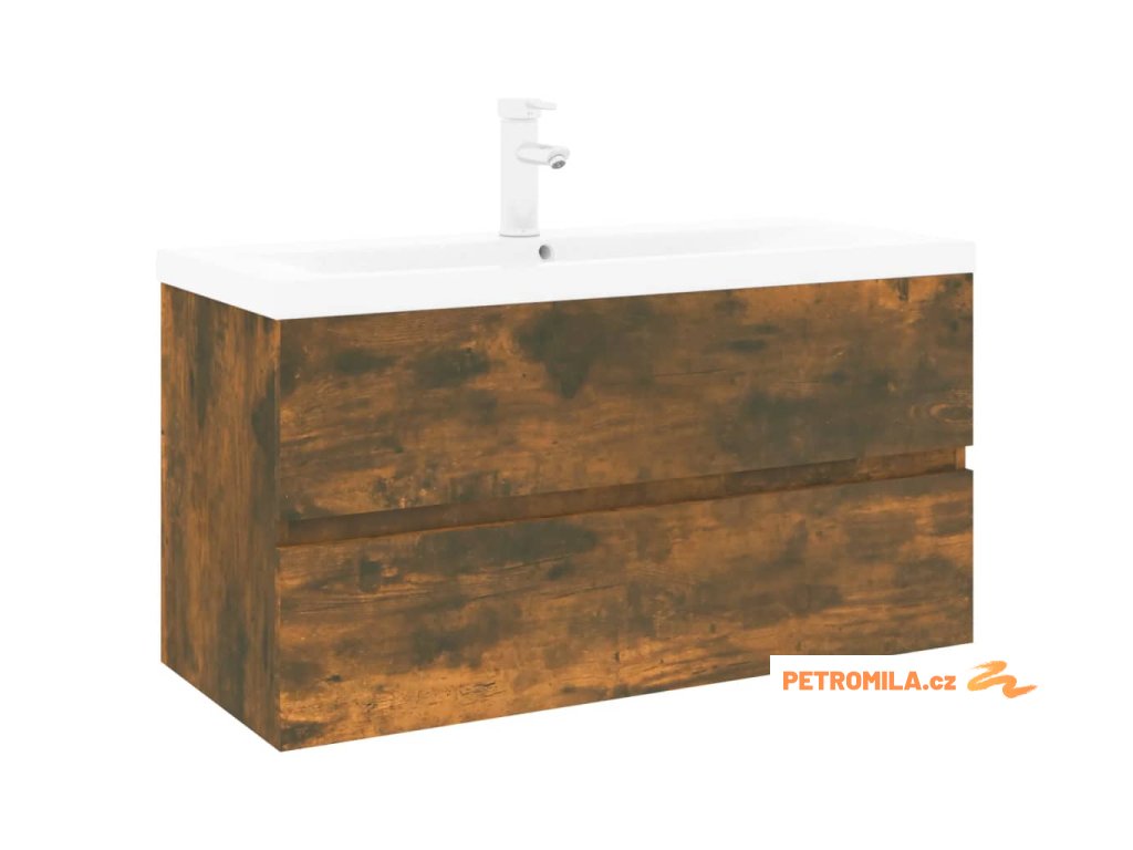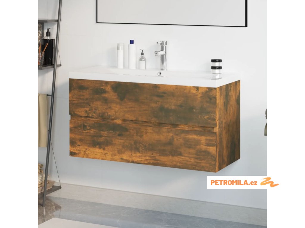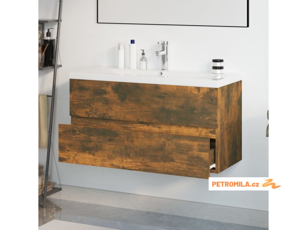 Umyvadlová skříňka s vestavěným umyvadlem kouřový dub kompozit