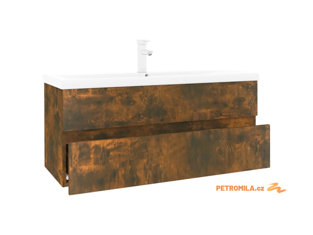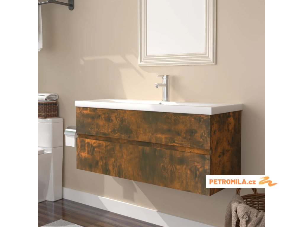 Umyvadlová skříňka s vestavěným umyvadlem kouřový dub kompozit