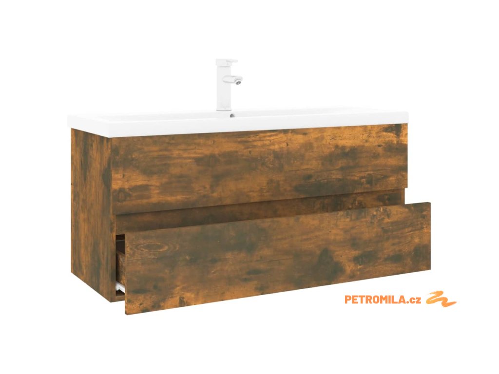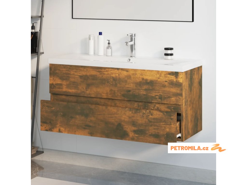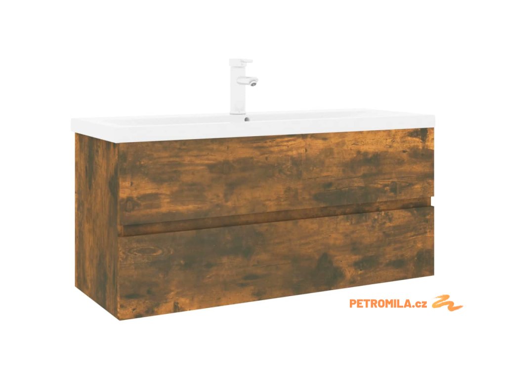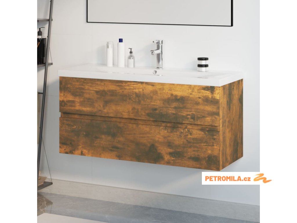 Umyvadlová skříňka s vestavěným umyvadlem kouřový dub kompozit