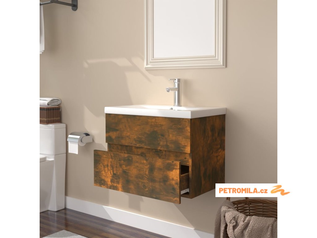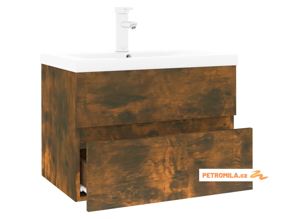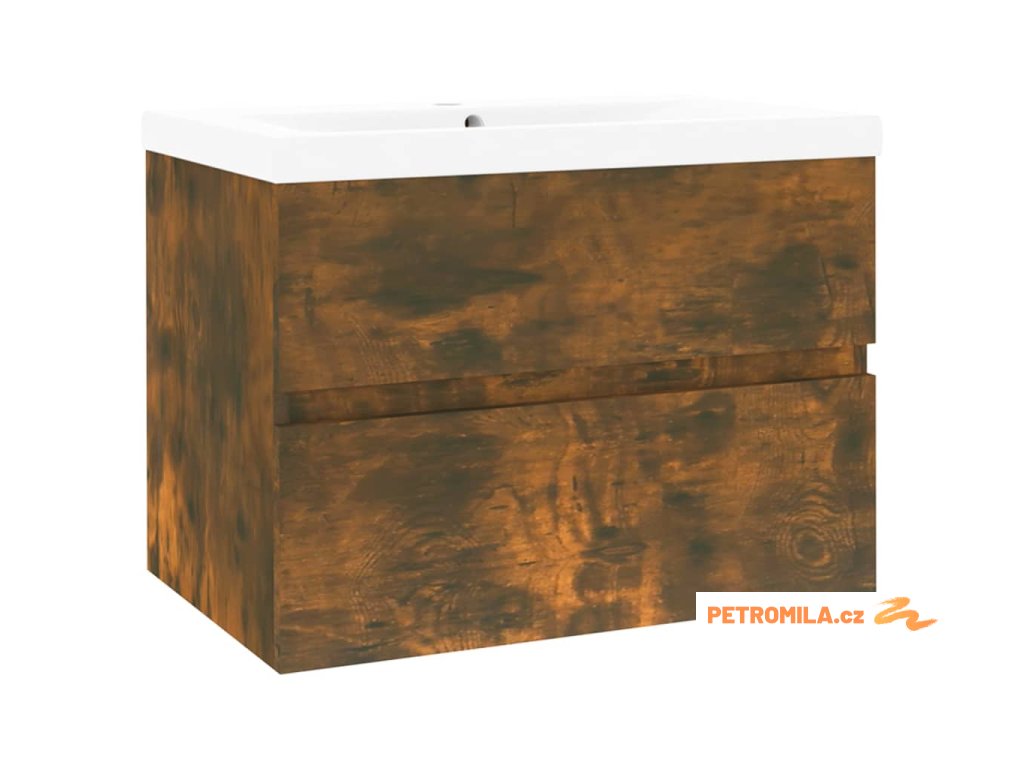 Umyvadlová skříňka s vestavěným umyvadlem kouřový dub kompozit