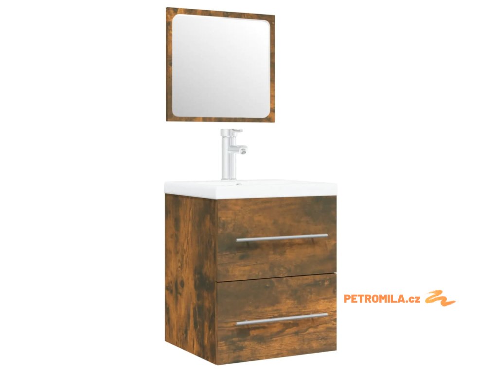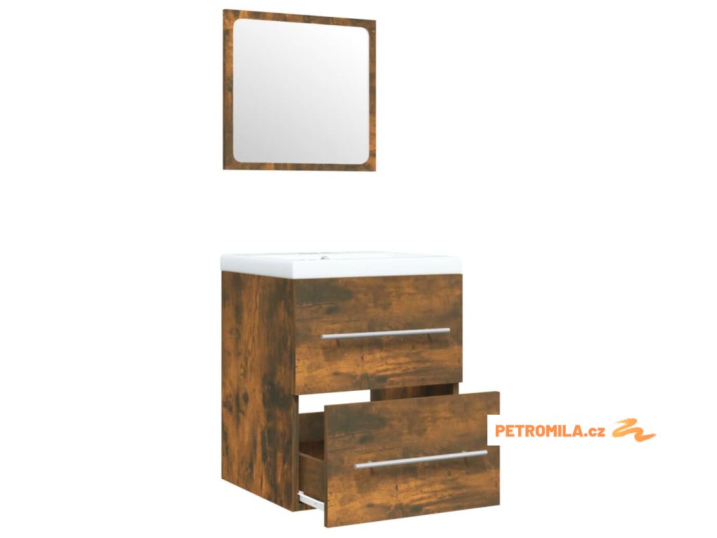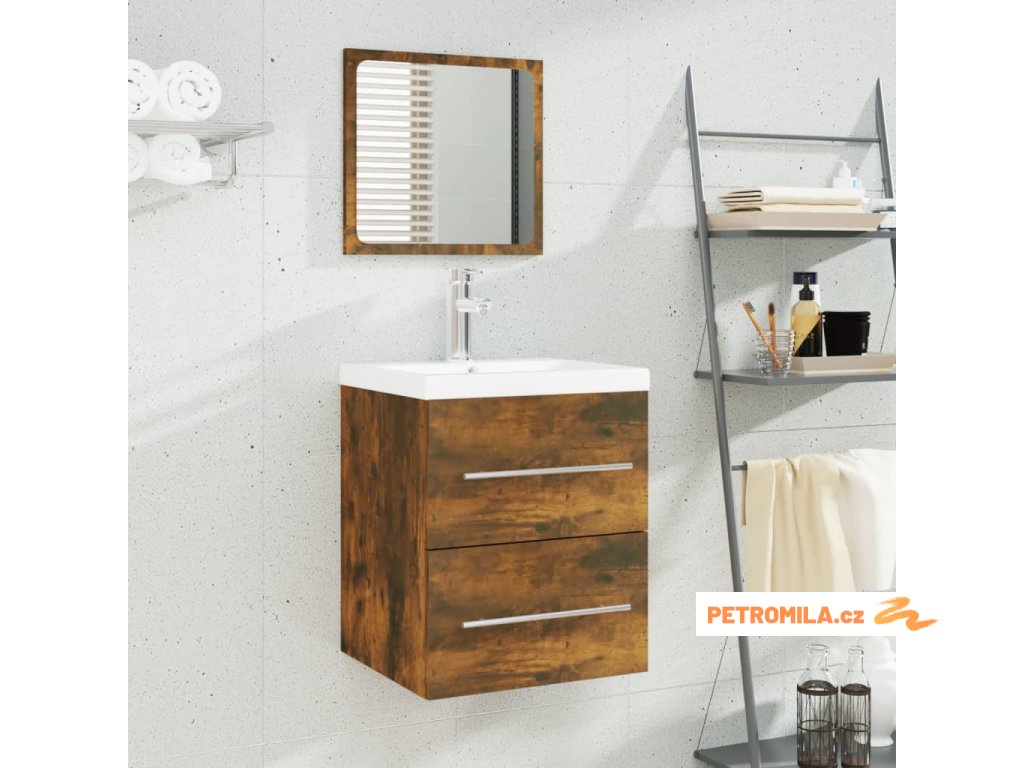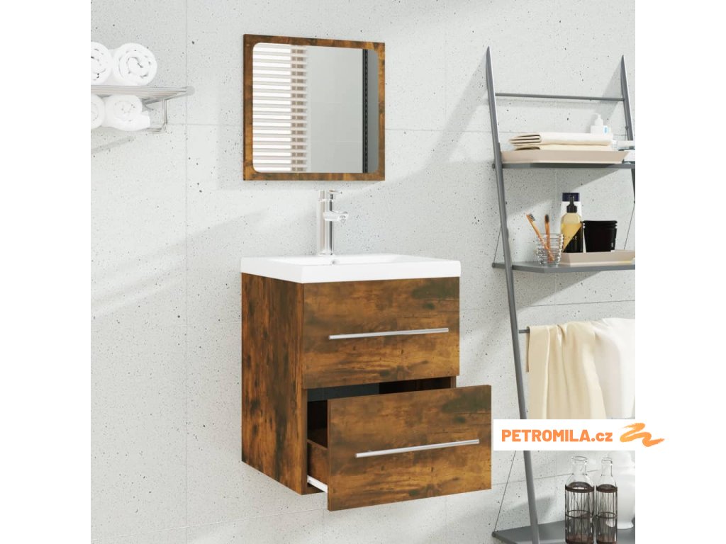 Umyvadlová skříňka s vestavěným umyvadlem kouřový dub kompozit