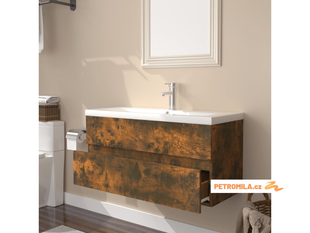 Umyvadlová skříňka s vestavěným umyvadlem kouřový dub kompozit