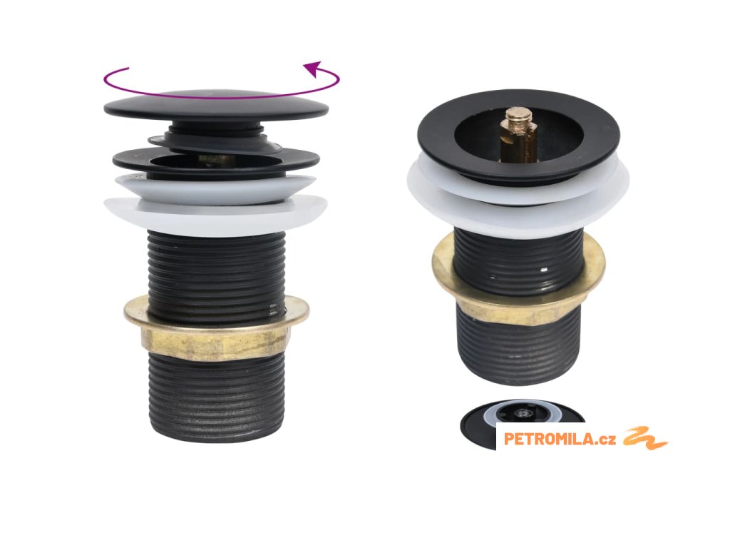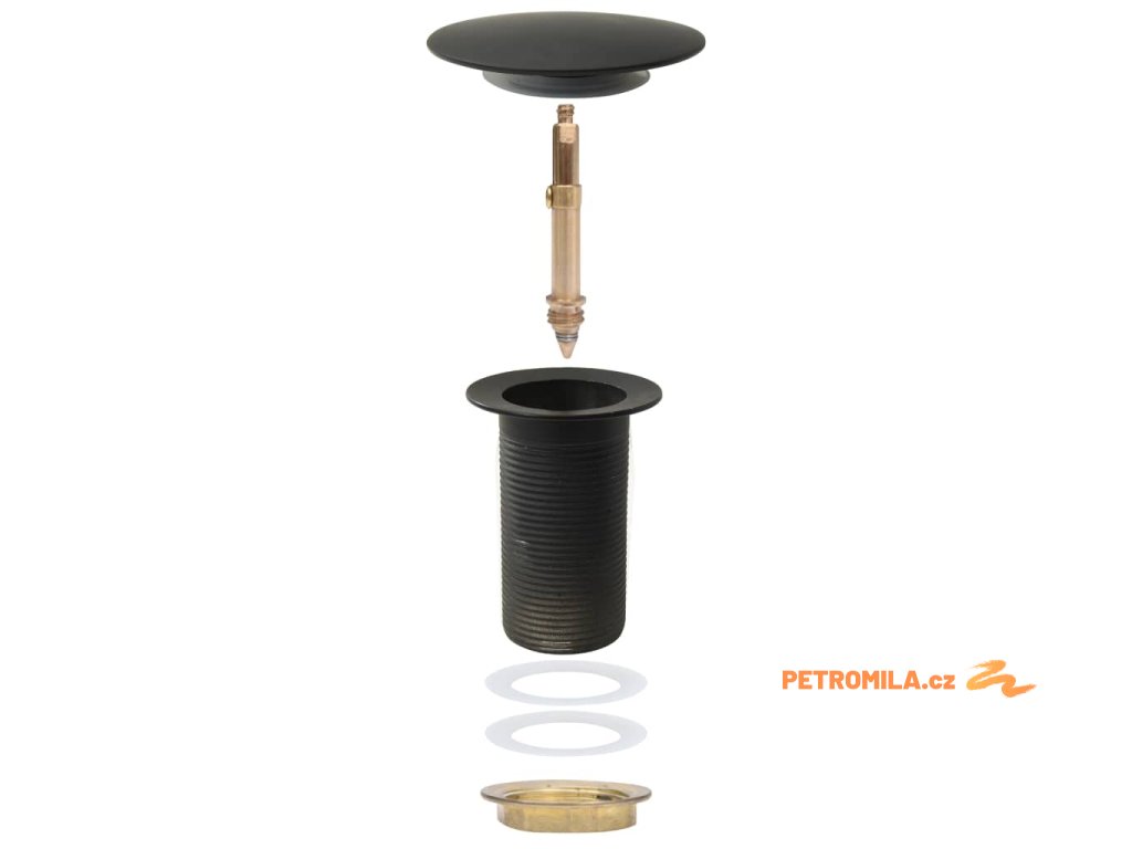 Umyvadlová výpusť bez přepadu černá 6,4 x 6,4 x 9,1 cm