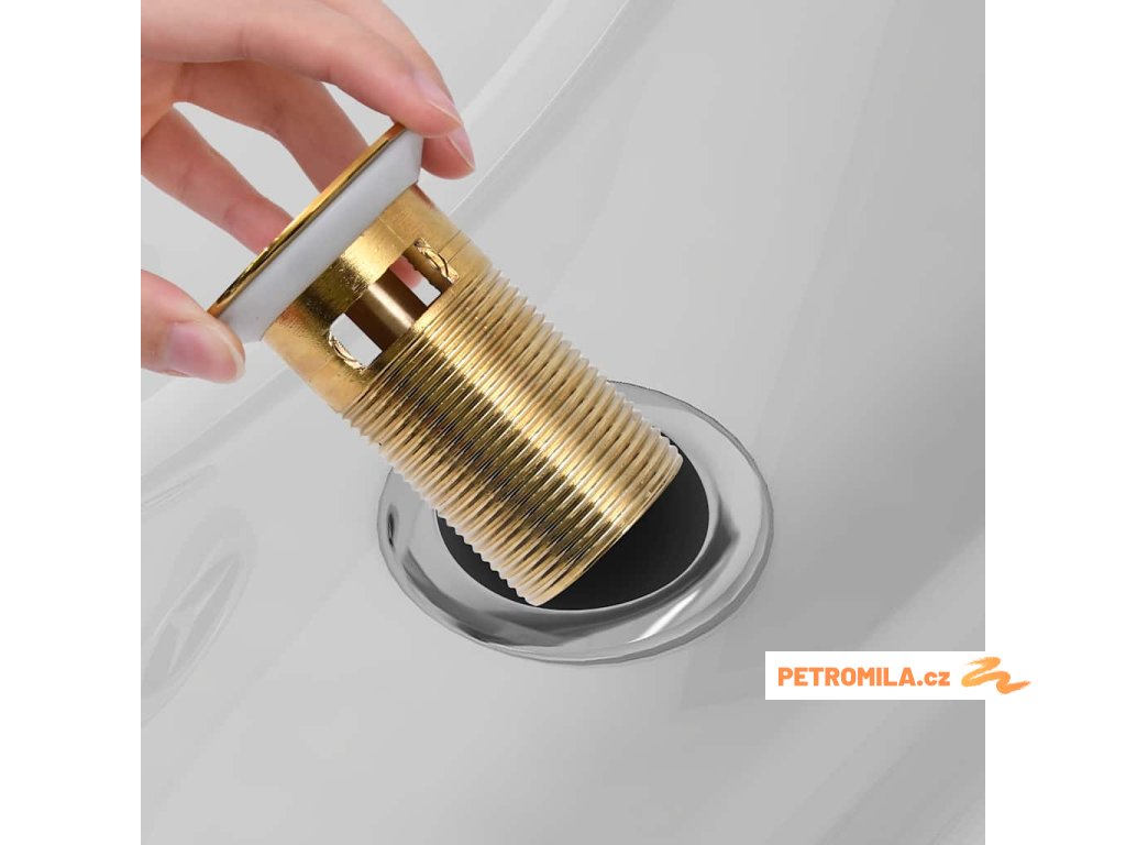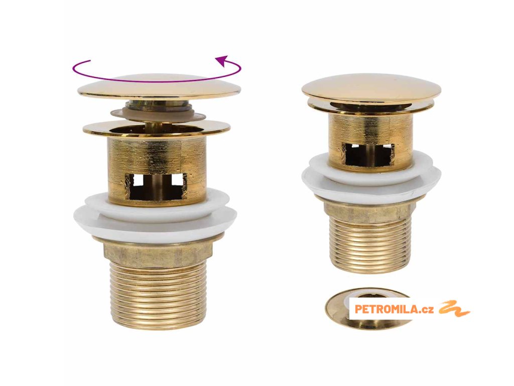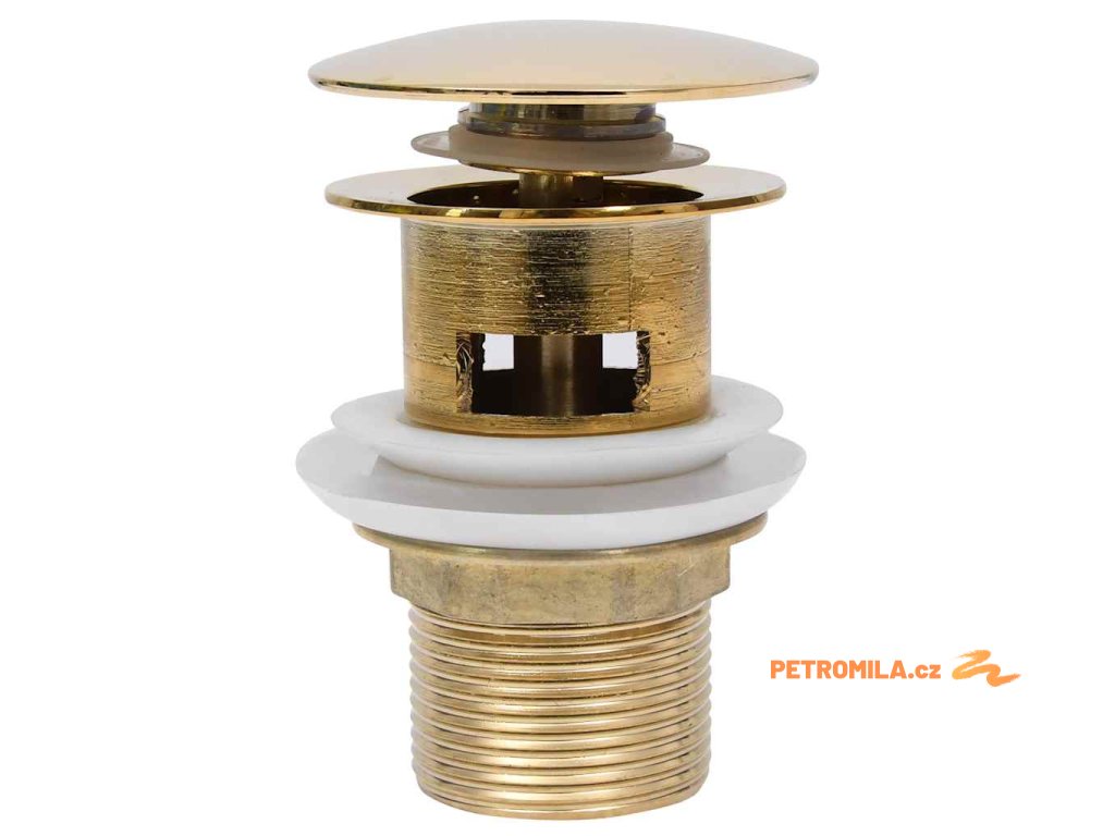 Umyvadlová výpusť s přepadem zlatá 6,4 x 6,4 x 9,1 cm