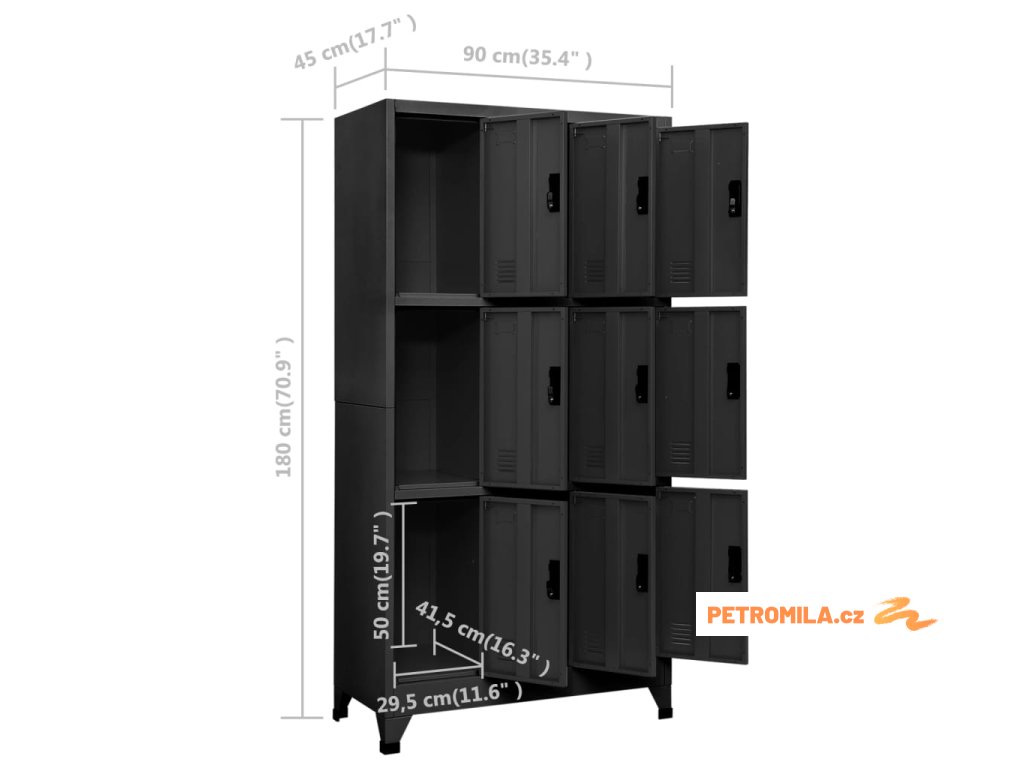 - 9 uzamykatelných dvířek (součástí balení jsou 2 klíčky pro každá dvířka)