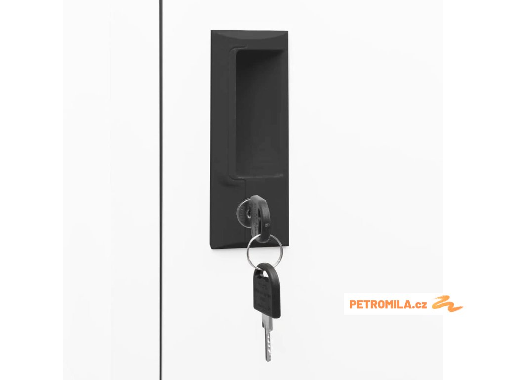 Tato zamykací skříň má moderní design, který bude skvělým dekorativním doplňkem každé místnosti nebo kanceláře.