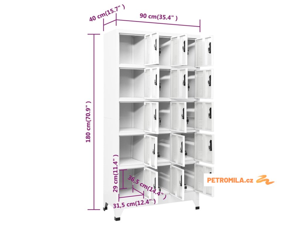- 15 uzamykatelných dvířek (součástí balení jsou 2 klíčky pro každá dvířka)