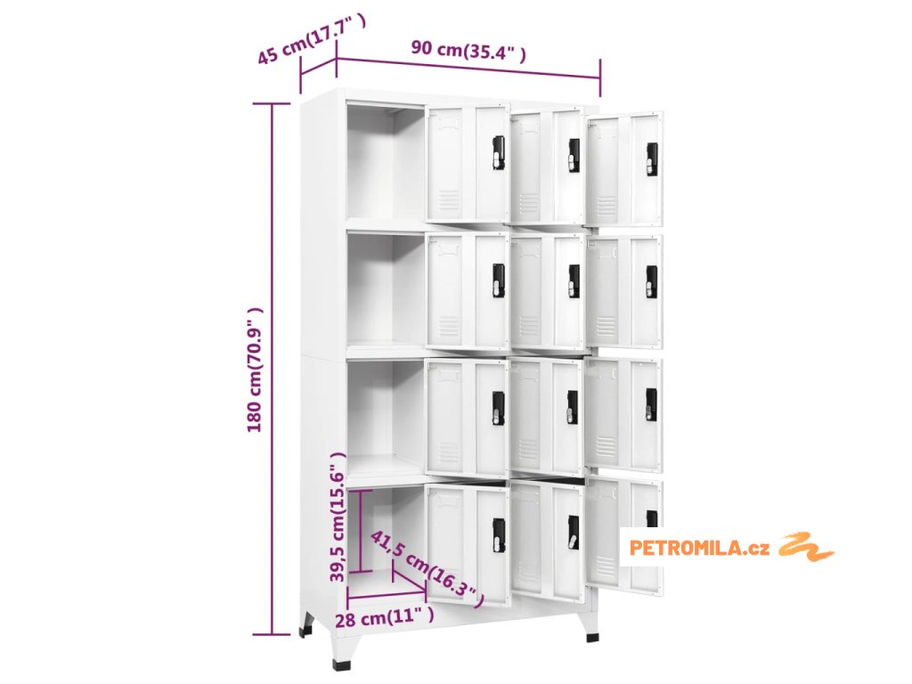 - 12 uzamykatelných dvířek (součástí balení jsou 2 klíčky pro každá dvířka)