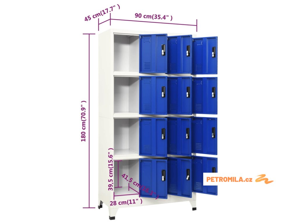 Úložná skříňka je vyrobena z oceli, proto má dlouhou životnost a snadno se čistí. Každá přihrádka je vybavena uzamykatelnými dvířky s větracími otvory. Skříň má dostatek úložného prostoru pro bezpečné uložení oblečení a dalších osobních věcí. Držáky na štítky umožňují přehledně třídit vaše položky. Tato skříň je vhodná do škol a kanceláří k uložení nejrůznějších věcí.