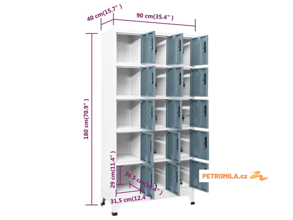 - 15 uzamykatelných dvířek (součástí balení jsou 2 klíčky pro každá dvířka)