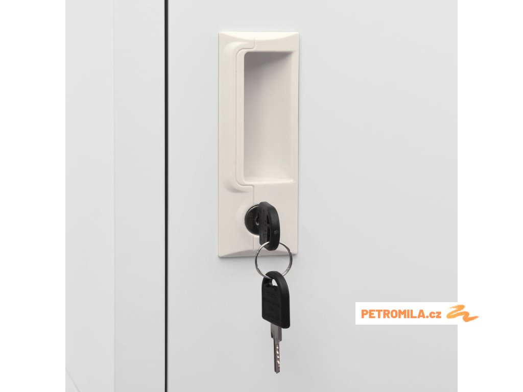 Tato zamykací skříň má moderní design, který bude skvělým dekorativním doplňkem každé místnosti nebo kanceláře.