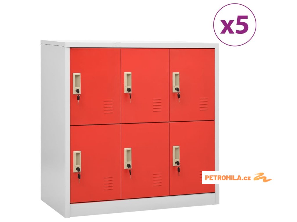 Uzamykatelné skříně 5 ks světle šedé a červené 90x45x92,5 cm