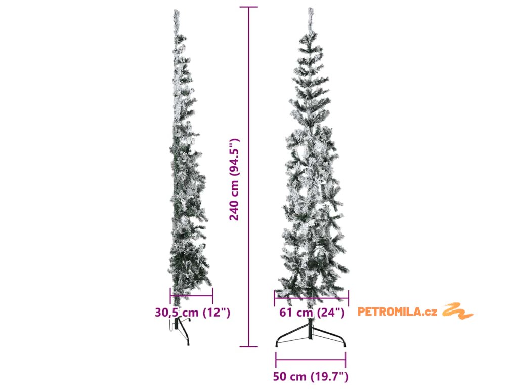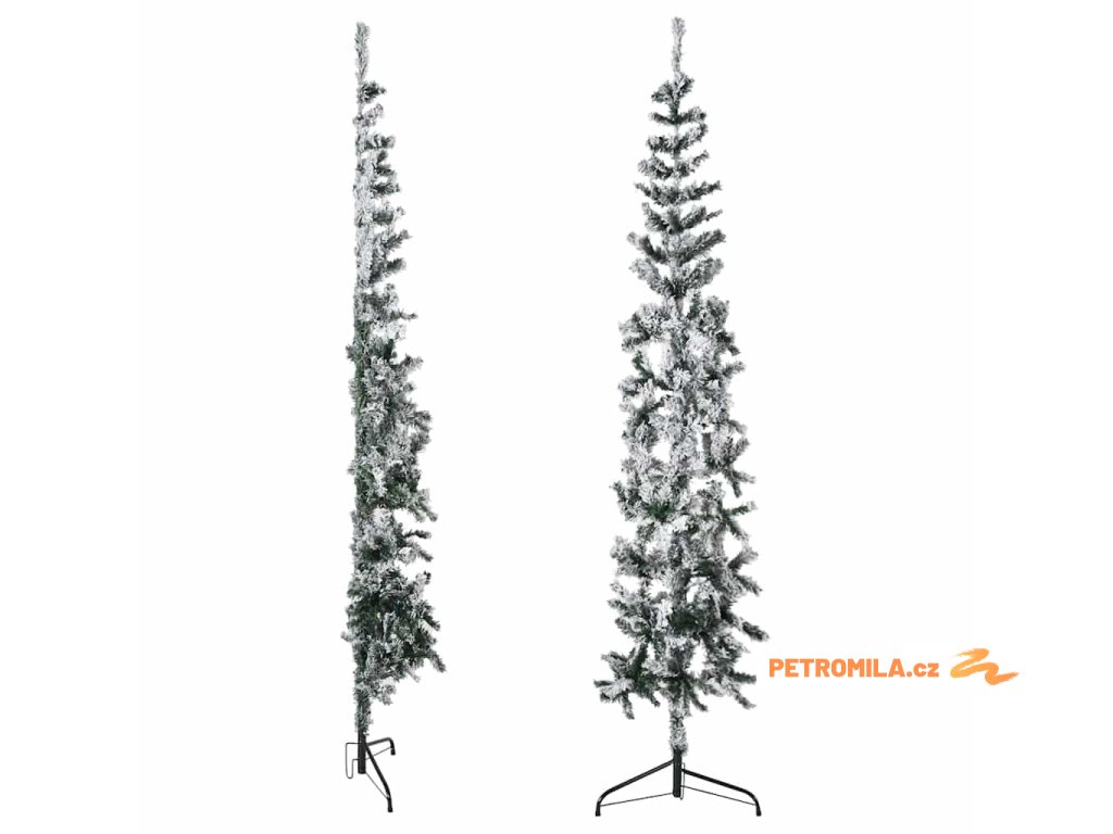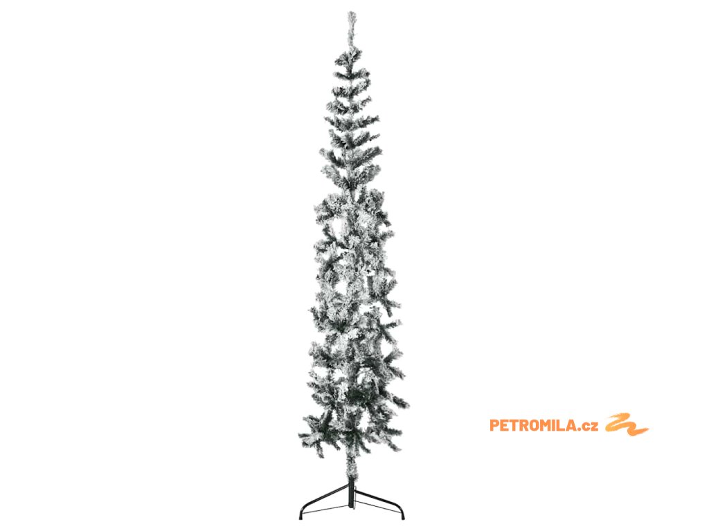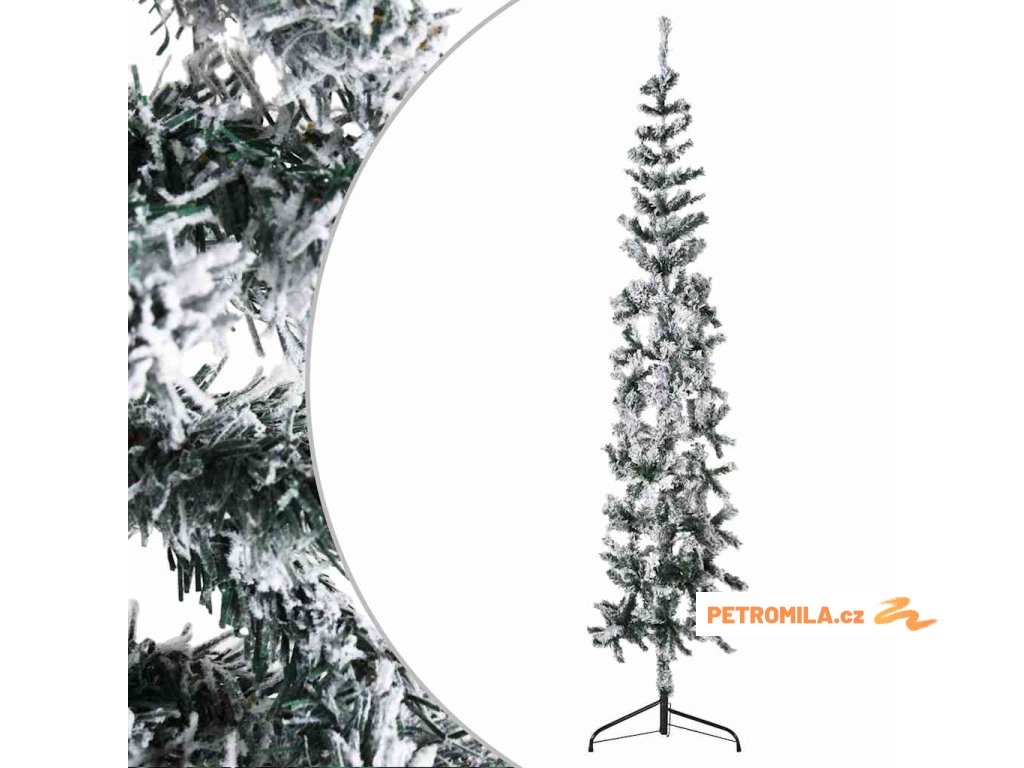 Úzký umělý poloviční vánoční stromek se sněhem 240 cm