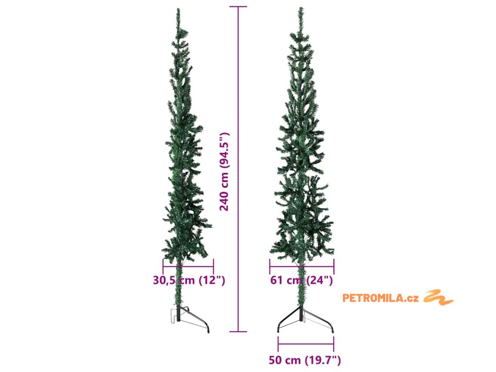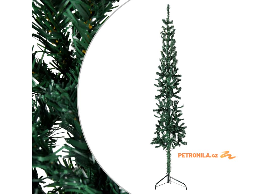 Úzký umělý poloviční vánoční stromek se stojanem zelený 240 cm