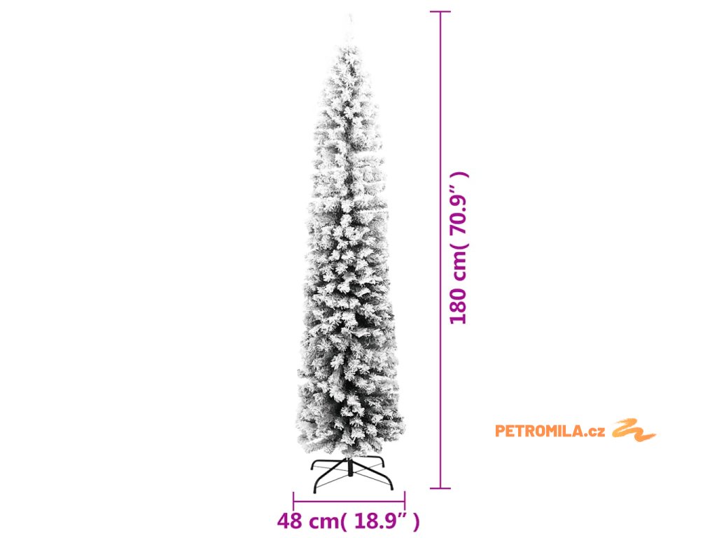 Úzký umělý vánoční stromek zasněžený zelený 180 cm PVC