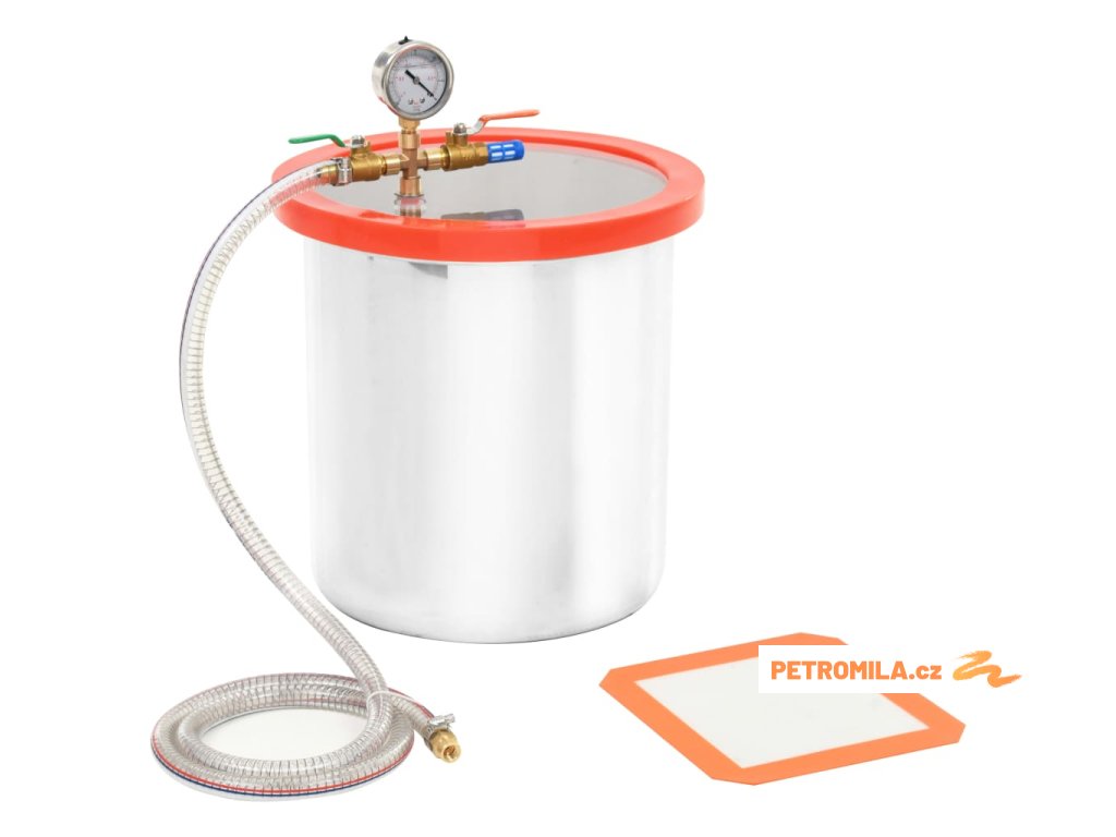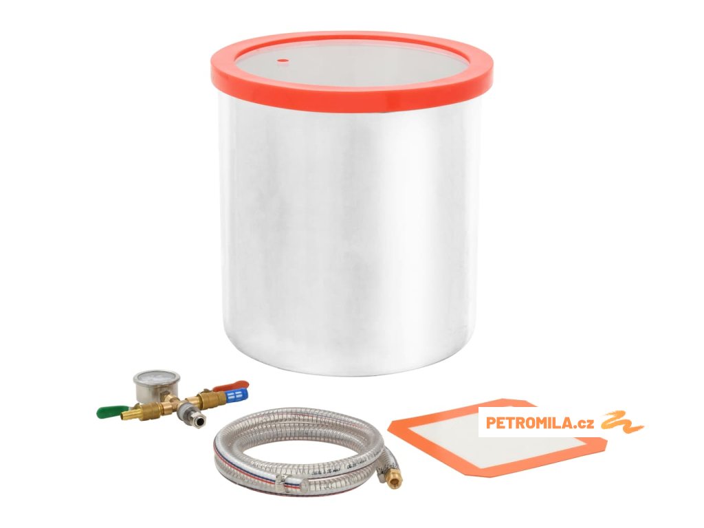 Odplyňovací komora je dobře utěsněná, aby se zabránilo jakémukoli úniku, a představuje bezpečný a spolehlivý prostředek k odplynění. Je vyrobená z nerezové oceli, která je odolná, neopotřebovává se a skvěle odolává tlaku. Mimořádné silné, průhledné akrylové víko se při vakuových procesech nikdy neprohne a umožní vám celý proces odplynění pozorně sledovat. Pro lepší kontrolu je k dispozici také silikonový olejový manometr a otřesuvzdorný vakuový manometr. Ocelová hadice dokáže čelit i vysokému tlaku.