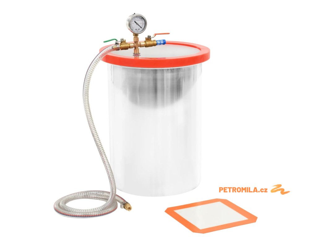 Odplyňovací komora je dobře utěsněná, aby se zabránilo jakémukoli úniku, a představuje bezpečný a spolehlivý prostředek k odplynění. Je vyrobená z nerezové oceli, která je odolná, neopotřebovává se a skvěle odolává tlaku. Mimořádné silné, průhledné akrylové víko se při vakuových procesech nikdy neprohne a umožní vám celý proces odplynění pozorně sledovat. Pro lepší kontrolu je k dispozici také silikonový olejový manometr a otřesuvzdorný vakuový manometr. Ocelová hadice dokáže čelit i vysokému tlaku.