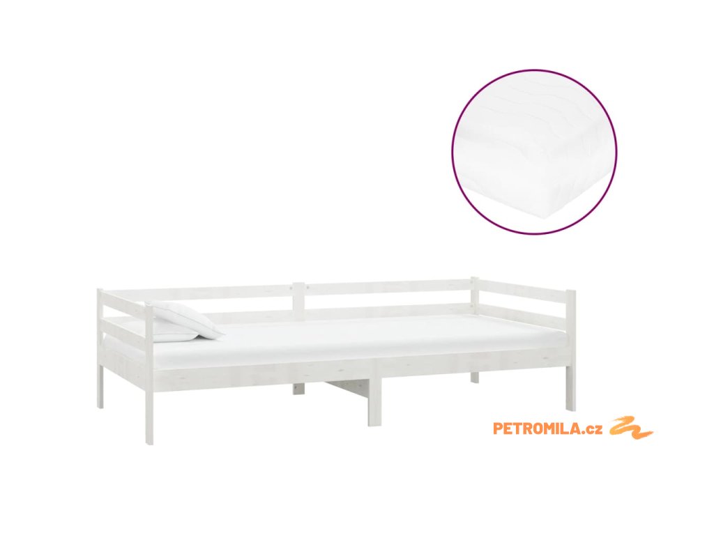 Válenda s matrací 90 x 200 cm bílá masivní borové dřevo