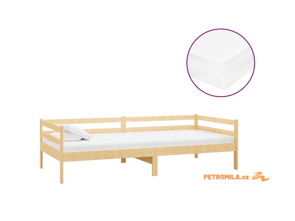 Válenda s matrací 90 x 200 cm masivní borové dřevo