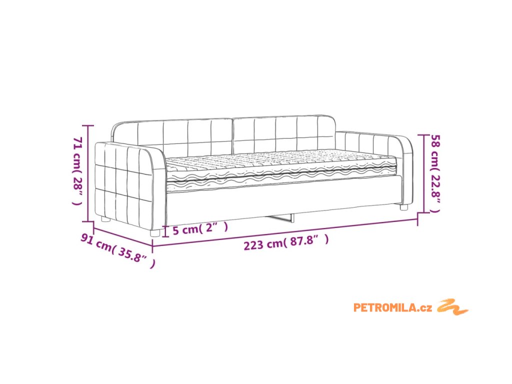 - Celkové rozměry: 223 x 91 x 71 cm (D x Š x V)