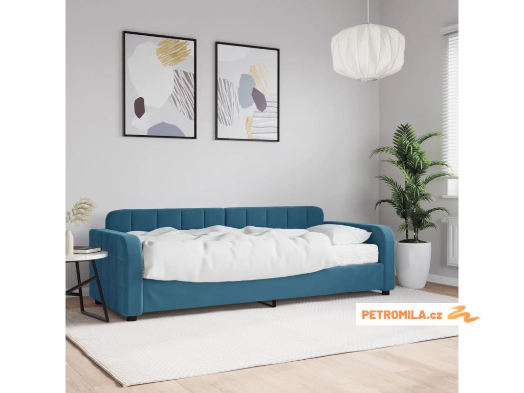 Válenda s matrací modrá 80 x 200 cm samet