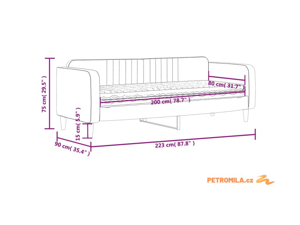 - Rozměry: 223 x 90 x 75 cm (D x Š x V)
