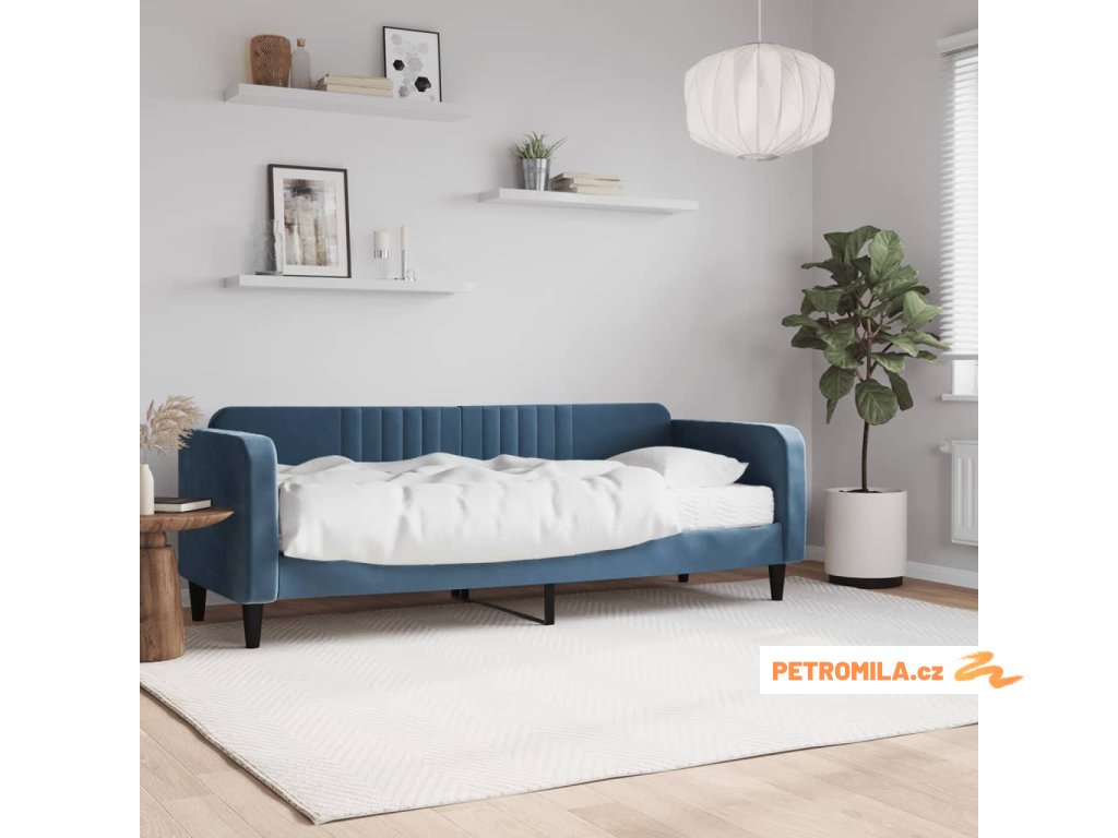 Válenda s matrací modrá 80 x 200 cm samet