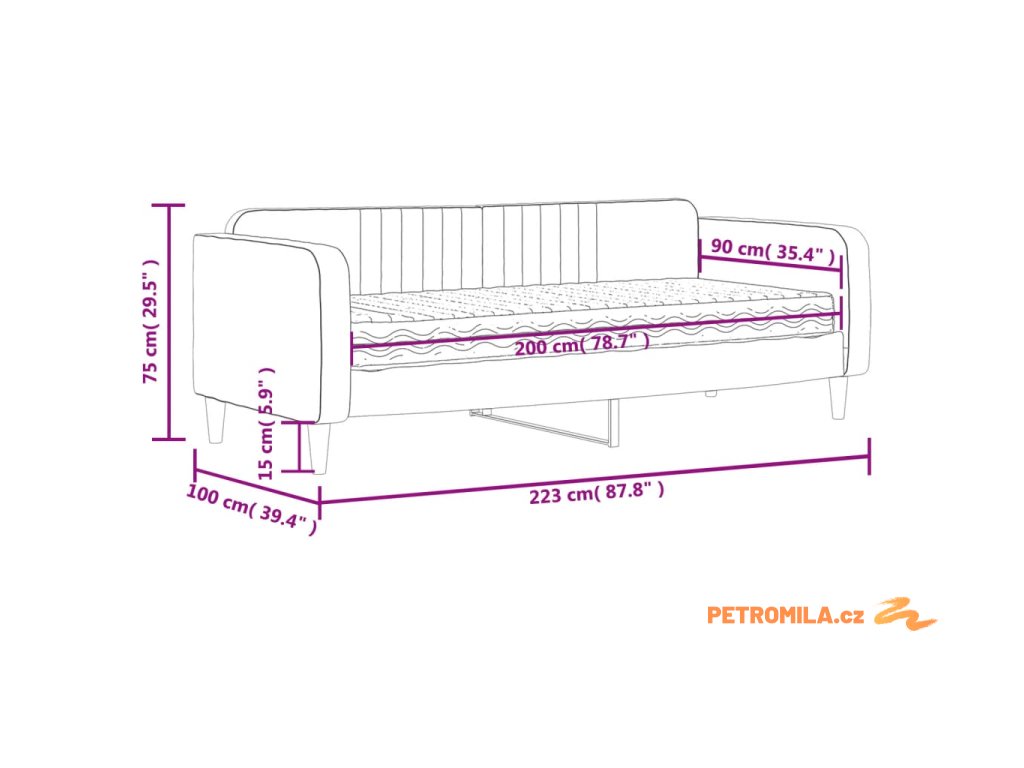- Rozměry: 223 x 100 x 75 cm (D x Š x V)