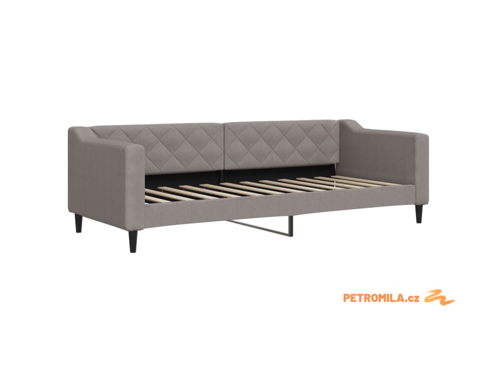 - Odolná tkanina a pevná konstrukce: Tato válenda má robustní rám ze dřeva a kovu a je čalouněná odolnou a pohodlnou látkou.