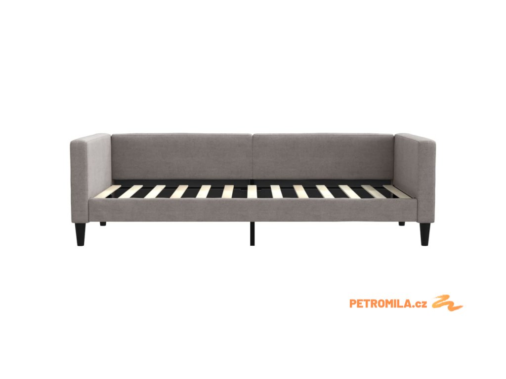 - Odolná tkanina a pevná konstrukce: Tato válenda má robustní rám ze dřeva a kovu a je čalouněná odolnou a pohodlnou látkou.