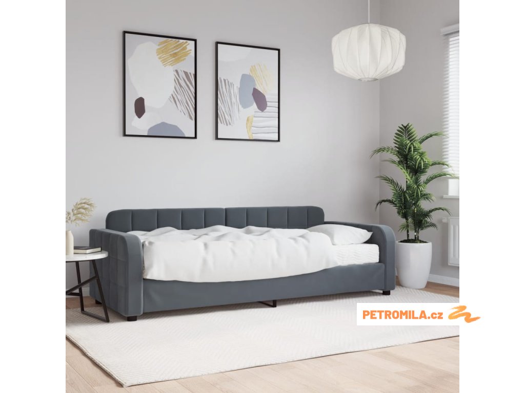 Válenda s matrací tmavě šedá 80 x 200 cm samet