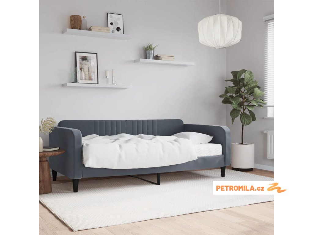 Válenda s matrací tmavě šedá 90 x 190 cm samet