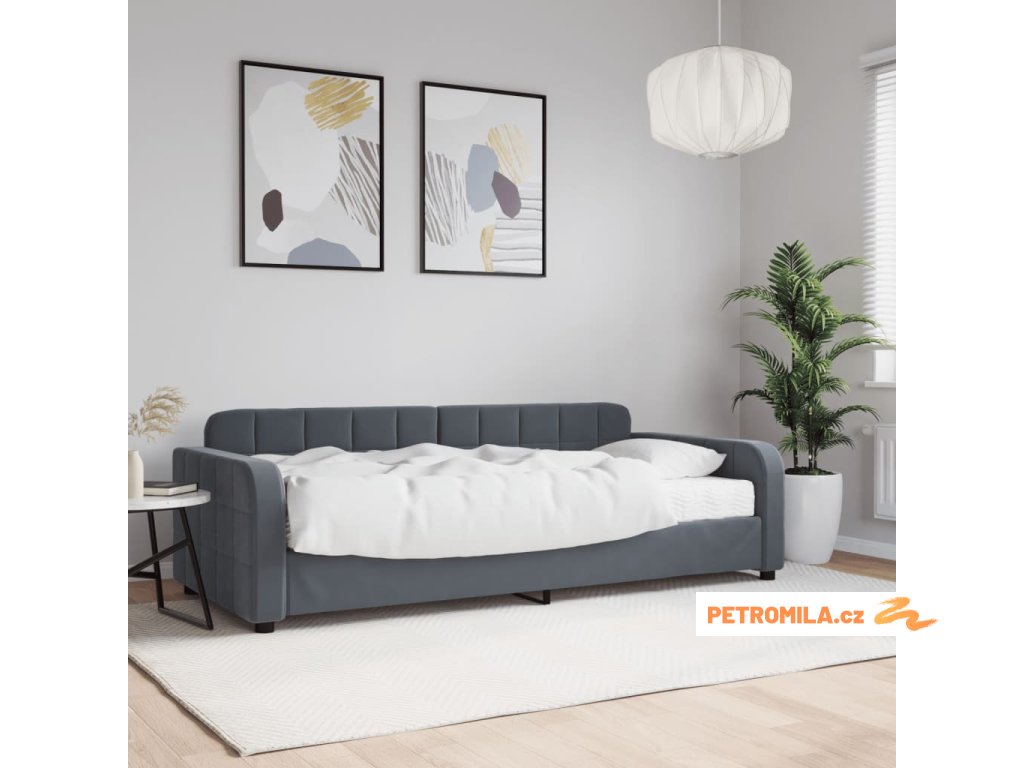Válenda s matrací tmavě šedá 90 x 200 cm samet