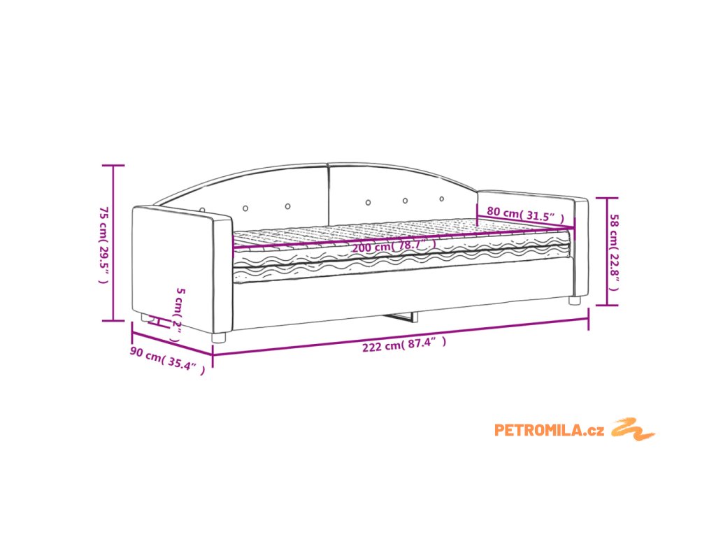 - Rozměry: 222 x 90 x 75 cm (D x Š x V)