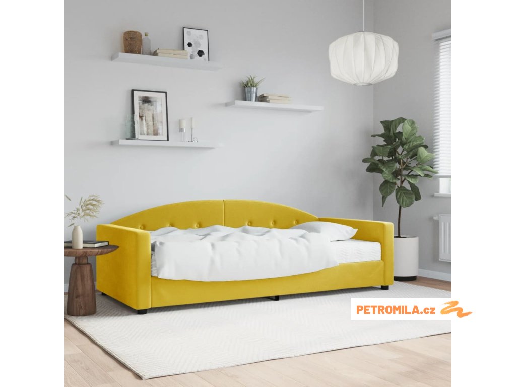 Válenda s matrací žlutá 90 x 200 cm samet